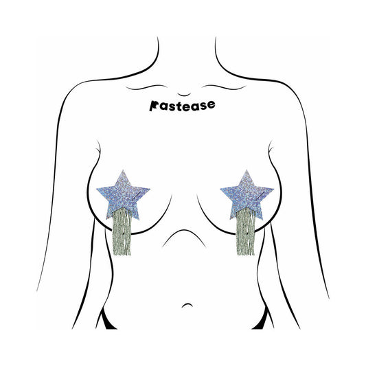 STAR: TASSEL PASTIES: SILVER GLITTER STAR WITH FRINGE PASTIES