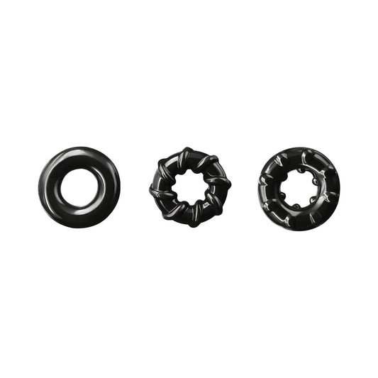 RENEGADE FIREMAN RINGS 3-PIECE COCK RING KIT BLACK