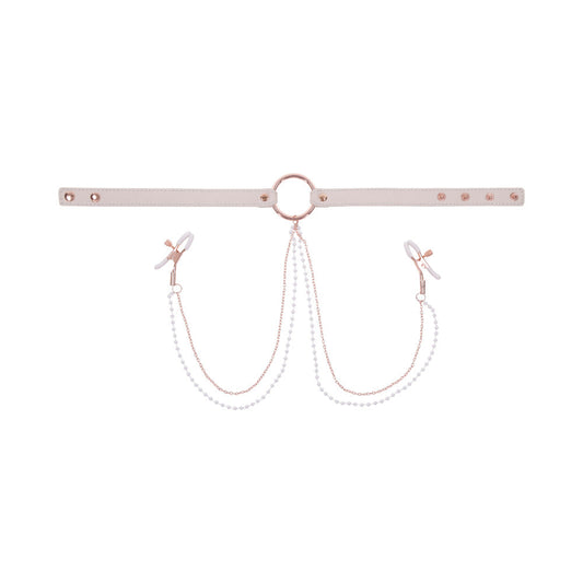 SPORTSHEETS SEX & MISCHIEF PEACHES ''N CREAME COLLAR WITH NIPPLE CLAMPS