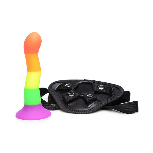 XR BRANDS - STRAP U PROUD RAINBOW SILICONE DILDO WITH HARNESS