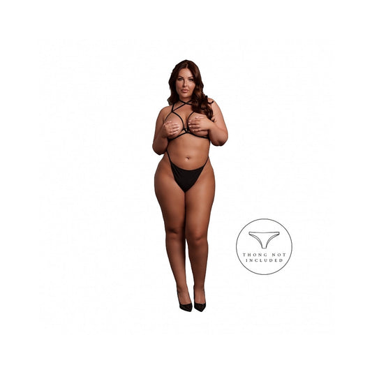 LE DESIR OPEN CUP TRIANGLE BRA WITH NECK STRAP AND ADJUSTABLE SLIDERS BLACK QUEEN SIZE