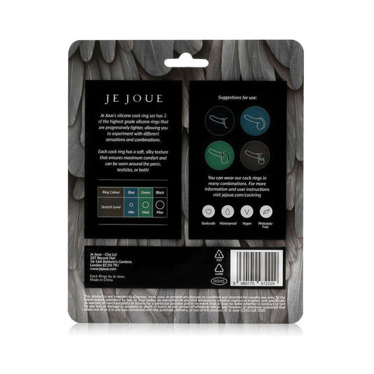 JE JOUE SILICONE COCK RING 3-PIECE SET BLACK/GREEN/BLUE