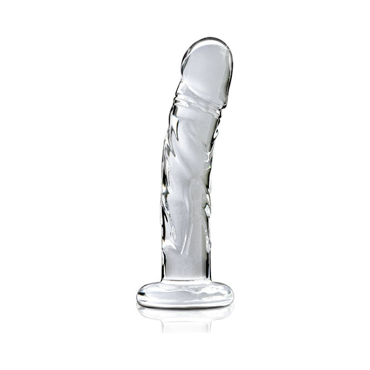 ICICLES NO. 60 CURVED RIBBED 6.5 IN. GLASS DILDO CLEAR