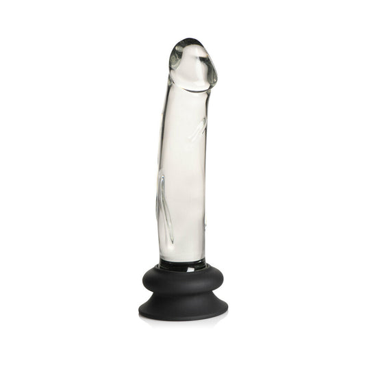 PLEASURE CRYSTALS 7.6 IN. GLASS DILDO WITH SILICONE BASE