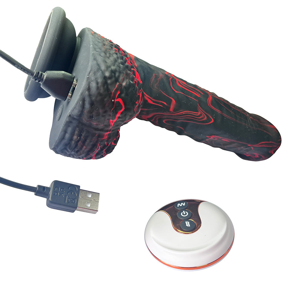 Rock Your Bed With Powerful Thrusting, Gyration and Vibration!Hope you''ve got a sturdy bed, because this powerful dildo is guaranteed to get it rocking! Add lube, then slide its big and filling realistically shaped shaft inside you. Fire it up to feel intense thrusts! As it thrusts, the tip gyrates in a tight circle, adding extra stimulation. Make the ride even better with powerful tip-focused vibration modes. A control button on the dildo combines thrusting and vibration for you. Or grab the remote control and choose from 5 intense thrusting modes and 7 body-quaking vibration modes! Hold this huge dildo by its big balls or stick its suction cup to hard surfaces and ride hands-free. Waterproof. Silicone. 8.9 by 3.1 inches total length, 6.5 by 1.5 inches insertable. Rechargeable dildo, remote takes one 12V battery (included). Big thrusting and vibrating dildo with remote Colorful silicone shaft with realistic shape Shaft thrusts, gyrates, and vibrates for great stimulation Explore combined sensations via the dildo Or take total control with the remote Remote gives you 5 thrusting/gyration modes + 7 vibe modes Secure suction cup base Rechargeable, runs approx. 45 minutes per charge Waterproof