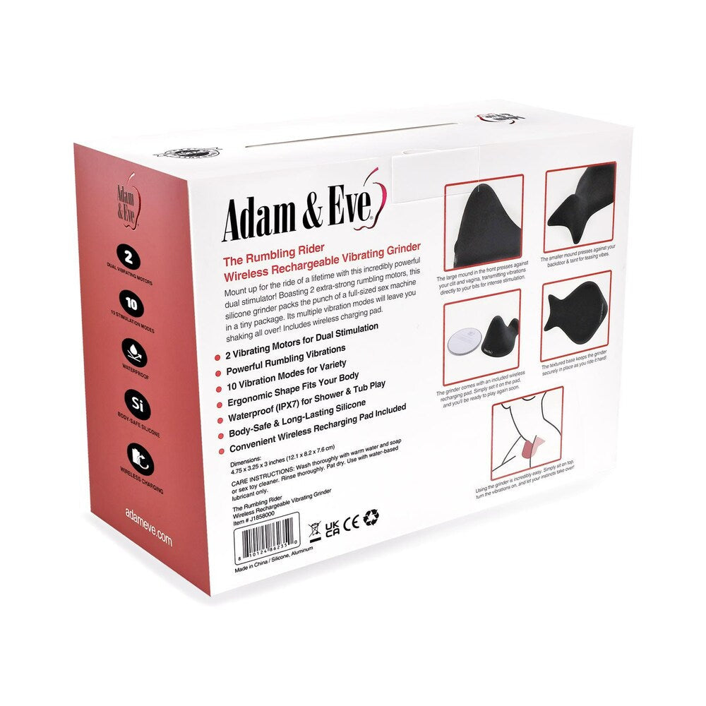 Love to bump, rub and grind? We''ve got the toy for you! The Rumbling Rider is ergonomically shaped to work your body. Simply sit on top and let your natural instincts take over. 2 motors send powerful rumbling vibrations to your sensitive nerves. Did you get that? Let''s go over it again. These are powerful vibrations! This toy packs the punch of a full-sized sex machine into a petite package! Explore 10 vibration modes that will thrill you with toe-curling pleasure. Waterproof so you can ride and grind in the bath or shower. Body safe silicone is so smooth, perfect for really losing yourself in sensation. Rechargeable, ride for up to 45 minutes. Wireless vibrating grinder Dramatic curved shape 2 powerful vibrating motors 10 sensual vibration modes Waterproof Body safe silicone Rechargeable, ride for up to 45 minutes Water based lubes only