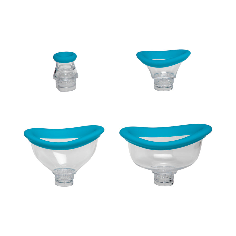 The Bloom intimate body pump is Automatic - Vibrating and Rechargeable. 4-in-1 interchangeable set for different sizes. COLOR: BLUE/WHITE@np2020-36 @summer2020-49