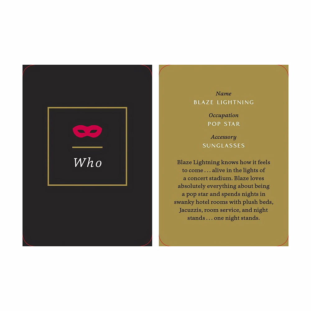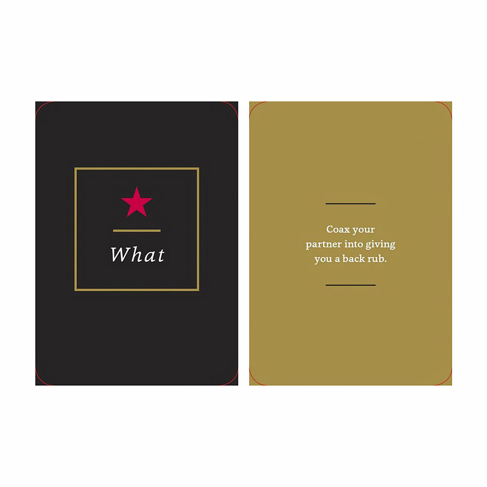 Come As You Aren''tA Role-Playing Game for Adventurous Couples By Potter GiftThis simple role-playing kit will help couples experiment, improvise, and seduce in ways they never would have otherwise imagined. To use the set, one partner draws a Who, a What, and a Where card at random, puts them in an envelope, and then gives the envelope for their partner or leaves it for him or her. From there, it''s up to them to enact the scenarios as they see fit. The instructions are printed on back cover of the slipcase and each deck comes with a few blank cards to customize.
