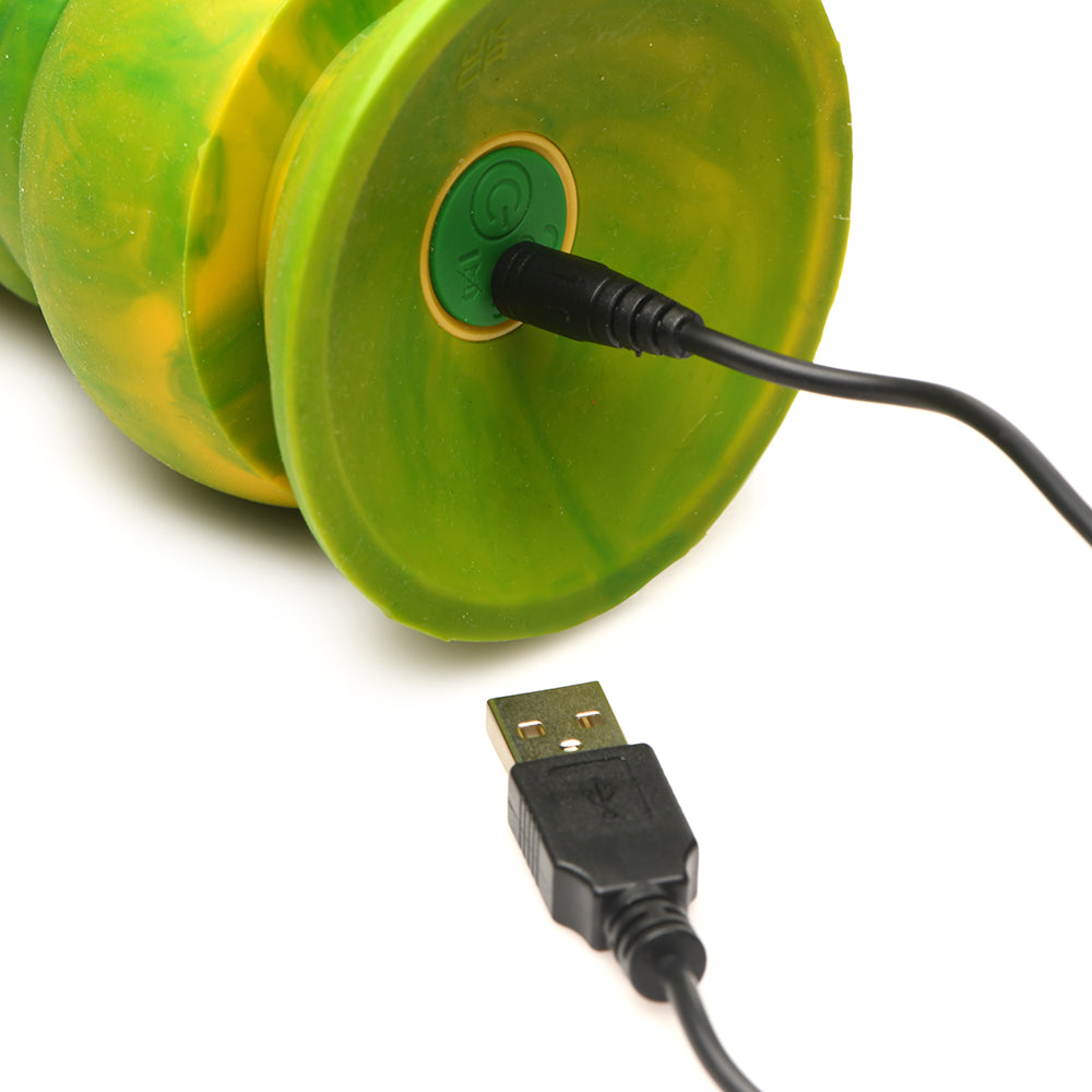 Enjoy your favorite Creature Cocks dildo with this vibrating Monstropus Tentacle! This yellow and green tentacle is massive and thick. The tapered tip helps with insertion, but from there on you can enjoy deep stretching as you fill yourself up with this firm yet squishy rod! Covered in suckers, this uniquely textured shaft stimulates you in new and spectacular ways! To add to the sensations, there''s a powerful vibrator inside of the toy that packs 3 speeds and 7 patterns of vibration! Take this monster tentacle inside of you while enjoying the deep, powerful, rumbling vibrations! This toy is perfect for solo play and has a strong, suction-cup base for hands-free riding! Combine it with a compatible strap-on harness and enjoy some serious pegging fun! Indulge in any kinky cosplay, fantasy roleplay, or deviant desire, and rest easy knowing this rod is made out of premium, phthalate-free, body-safe silicone! Rated IPX6, it can be taken in the shower but cannot be submerged underwater. To recharge, use the USB cable provided. After play, wash with warm water and mild soap, then rinse and spray with a toy cleaner before patting dry. Use only with water-based lubricants for best results.A huge octopus grabs onto the boat, and pulls it to the side! You fall into the water, thrashing amidst the fallen items from the boat and scrambling to get hold of anything that you can climb onto! In pure panic, you grab something long and thick nearby... only to realize with dread that it is alive and moving! One of the monster''s long tentacles is holding onto the boat, too! You try to use it to climb to the boat, pushing against it to get your head above the water for a breath, but the tentacle pulls you in! Helplessly you gasp as it holds you above water and watches you sputtering! Its grasp is merciless and unyielding. Your whole body is beginning to be wrapped up by tentacles. The abnormally thick and brightly colored limbs explore you as it holds onto the mast of the boat with one large tentacle. It slips beneath your clothes and pulls them off you. You gasp in pain as your clothing shreds and tears, the fabric pulling against your flesh. You shiver as much in fear as from the cold as it holds you half-naked with salt spraying and splashing against you. One long, slim tentacle begins to reach between your thighs and with shock you scream as you realize what is going to happen next! The tentacle oozes out some slime and then forces itself inside! You gasp and wail in pain and fear at this violation, but then the wails of fear turn into soft moans of pleasure. The rage inside you rises to the surface and you enjoy the deep, penetrating reach of this thick tentacle. Yes, I deserve this. I deserve to be given exactly what I want... no matter how dark and dirty... and you writhe in pleasure in the middle of the ocean where no one can see you, no one can judge. Fantasy Dildo: This robust, yellow and green tentacle is thick, textured with suckers, and has a tapered tip. Powerful Vibration: Enjoy 3 speeds and 7 patterns of buzzing vibration! Premium Silicone: Made out of premium, phthalate-free, body-safe silicone. Harness Compatible Suction-Cup Base: The wide base is both strap-on harness compatible and has a suction-cup for hands-free rides. Waterproof and Rechargeable: Rated IPX6 waterproof so it can handle showers and splashes of water. Recharge using the USB cable provided. Measurements - Overall length: 7.3 inches; Insertable length: 6.6 inches; Narrowest insertable diameter: 0.5 inches; Widest insertable diameter: 2.8 inches. Note: Do not submerge under water. Use only with water-based lubricants for best results.
