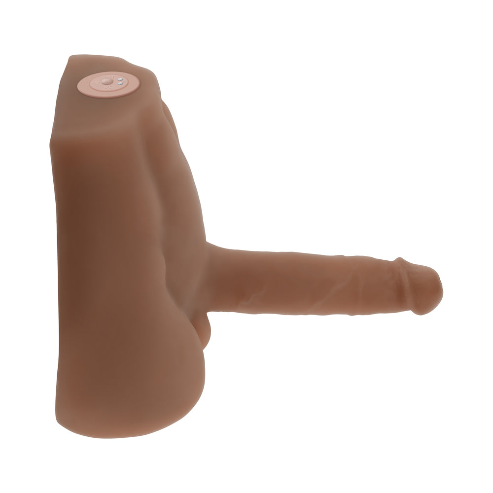 Get ready for an authentic experience with this thrusting, vibrating torso-shaped toy you can hold and squeeze while you play. Supple and stretchy, the realistic shaft flexes with your body, allowing you to build to a life-like, deeply satisfying climax. 7 vibrating and thrusting speeds and patterns Insertable length 7", insertable diameter 1.8" Made from phthalate and latex free TPR and ABS USB magnetic rechargeable, cable included Height: 9.45", Depth: 3.6", Width: 8.27" Waterproof and submersible