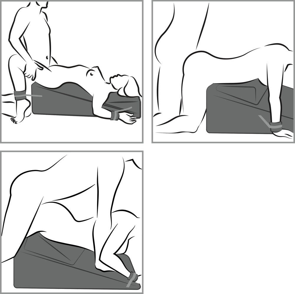 Captivating and diverse for deeper penetration and new positions! The 2 anatomically-shaped, wedge-shaped sex cushions that make up the Wedge/Ramp Combo from Liberator has 4 adjustable and removable restraints – handcuffs & ankle cuffs. A blindfold is included. The soft microfibre covers on the cushions 'stick' to each other. The covers can also be removed from the moisture-resistant cushions for cleaning. Wedge size: 61 x 35.5 x 17.75 cm. Ramp size: 86.4 x 61.0 x 30.5 cm. Cushions: PU foam. Covers: polyester (suitable for the washing machine).