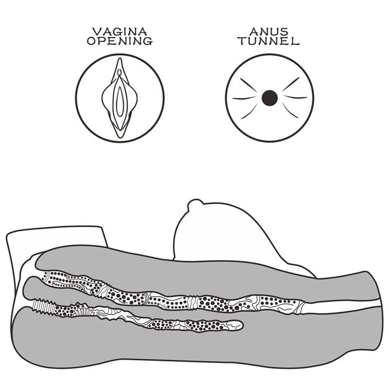 This masturbator is beautifully designed and molded after a model for a more authentic experience. The tunnel is designed with nubs that caress you as you slide deep inside her. The 9.4" vagina depth allows men of all sizes to enjoy an extra orgasm. The anal insertion is much tighter and features numerous curves. You'll be able to lay her down or hold her close to you while you explore either of her intricate inserts.