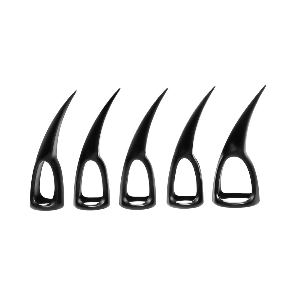 Unleash your inner creature with Talons 10 Piece Claws! Designed to fit every finger, this set of 10 rings in 5 different sizes is perfect for creative and sensory exploration. The tapered, pointed tips are ideal for stimulating touch play, while the flexible design allows you to wear them on bare skin or over gloves. Crafted from phthalate-free plastic, these claws are both safe and durable. Turn ordinary moments into extraordinary adventures with this playful set of sensation rings.Blndfolded and bound, you tremble in anticipation and excitement. You feel their breath on your neck as they kiss you, then talons are dragged across your skin and you squeal in delight! It gives you goosebumps across your flesh and you writhe in pleasure! They drag them lovingly across different areas of your body to see what new sounds you will make, then dig them into the meatier parts of you to really assert their dominance! Talon Rings: Enjoy 10 rings in 5 different sizes; one for each finger on each hand! Sensation Play: These rings are long, tapered, and have a pointed tip so you can enjoy using them as sensation play tools! Flexible Fit: They can be worn on bare skin or over gloves. Body-Safe Plastic: These phthalate-free plastic rings are body-safe. Measurements:Length: 2.3 inchesInner diameters: 0.58 inches, 0.61 inches, 0.66 inches, 0.7 inches, 0.87 inches