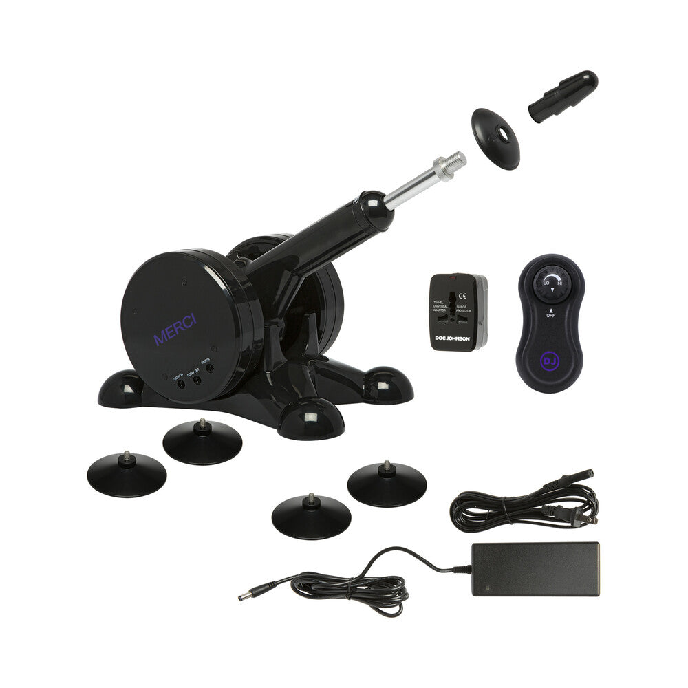 The Merci Power Banger Fuck Machine delivers superior power and endless deep pleasure. The strong machineft.s adjustable thruster arm can be angled to give you what you want in all your favorite positions, while four strong suction cups at the base keep it securely in place. The speed control dial puts you in complete control: the variable speed dial allows for thrusting speeds as slow as 28 strokes per minute, up to 195 strokes per minute. An included Vac-U-Lock Plug makes it able to use with attachments in Doc Johnsonft.s Vac-U-Lock and Signature Cocks lines, in addition to any other attachments with VUL compatibility.Features Handheld Controller Powers On/Off and Adjusts Speed Adjustable Arm for Precise Positioning Intense Multi-Speed Strokes Stroke Length: 60mm (2.36 in. Up to 195 Strokes per Minute Includes Rechargeable Wireless Remote Includes Universal Power Adapter for International Use Use with Any Vac-U-Lock Compatible Attachment Four Sturdy Suction Cups Keep Machine in Place AC 100-240V, 50-60HZ Universal Power Supply with US Power Cord Approximate Product Dimensions:Total Length: 16 in. (40.6 cm)Width/Diameter: 9 in. (22.9 cm)