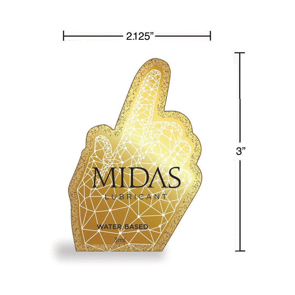 Introducing the Midas Water-Based Lubricant, now available in a convenient 3ml pouch – the perfect blend of luxury and practicality. Experience a whole new level of intimacy with our super silky formula that glides on like liquid velvet, enhancing every touch and sensation. Unlike other lubricants, Midas is water-based, making it gentle on the skin and easy to rinse off with just water.Say goodbye to irritation, discomfort, and dryness. Our pH-balanced formula is designed to match women''s natural lubrication, ensuring comfort and pleasure every time. Whether you''re enjoying a romantic evening with your partner or indulging in solo play, Midas provides the perfect companion for all your intimate moments.Perfectly packaged for on-the-go convenience, each 3ml pouch ensures you have just the right amount when you need it. Elevate your experiences with Midas – where every touch turns to gold. Get yours today and feel the difference!Ingredients: Deionized Water, Propanediol, Hydroxyethylcellulose, Sodium Benzoate, Potassium Sorbate, Citric Acid.