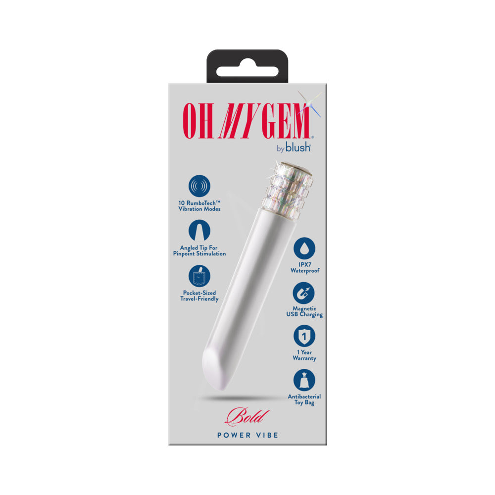 Awaken your passion with Oh My Gem Bold. Adorned with radiant Diamond gems, this elegant vibe captures the allure of the heirloom precious Diamond stone, bringing a touch of sophistication to every intimate moment. Experience 10 deep, rumbly vibration modes–5 speeds and 5 patterns–powered by Blush''s RumboTech for deep, resonant sensations. Designed with beauty and ease, Bold''s sleek, petite form is perfect for travel, featuring an angled precision tip that delivers pinpoint pleasure and stimulation. Crafted from body-safe materials, it''s IPX7 waterproof and recharges effortlessly with a magnetic USB, inviting you to explore wherever your desires take you. Make Oh My Gem Bold the crown jewel of your collection–a celebration of sensuality and self-love. Savor its powerful vibrations and luxurious allure, time after time. 10 Deep and Powerful RumboTech Vibration Modes Petite and Travel-Friendly, Take Your Gem Anywhere Precision Tip For Pinpoint Pleasure and Sensation IPX7 Waterproof and Magnetic USB Rechargeable 100% Body Safe, Phthalate and Latex Free