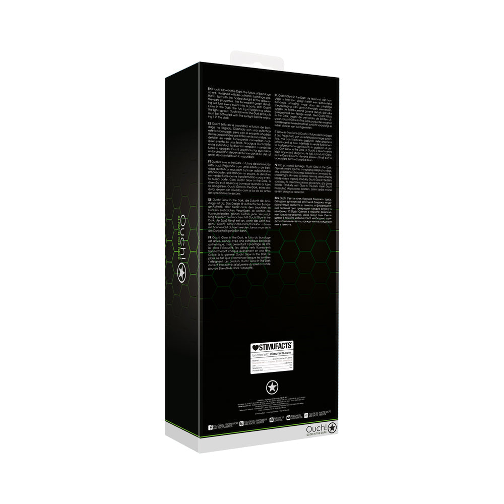 Ouch! Glow in the Dark, the future of bondage is here. Designed with an authentic bondage aesthetic, but with the added delight of the glow-in-the-dark properties, the fluorescent green detailing will turn every event into a part. With Ouch! Glow in the Dark, the fun is just beginning when the lights go out. Strap yourself into this harness and maximize your masculine shape. The harness is adjustable so it fits every body type. Ouch! Glow-in-the-Dark products must be activated with the sunlight before enjoying it in the dark. Weight package 13.76 oz Splashproof Yes Phthalate free Yes Materials 95% PU Leather, 5% Metal