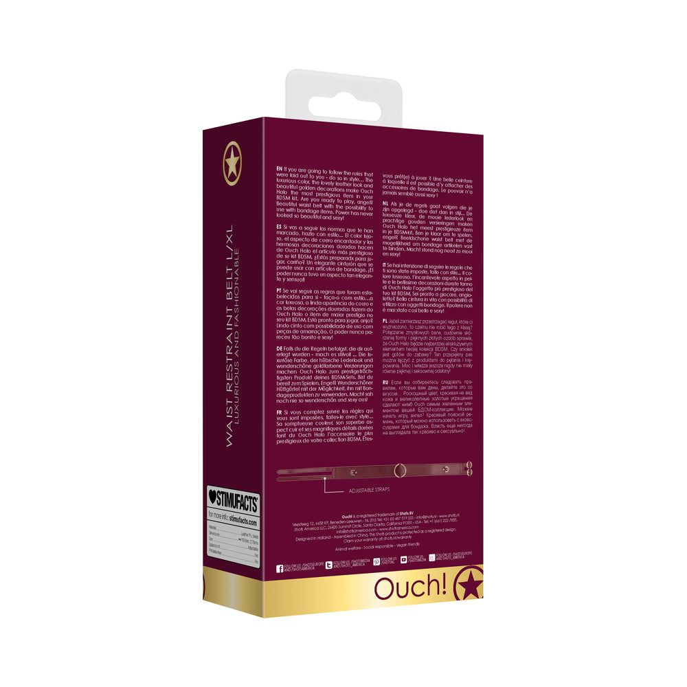 OUCH! HALO RINGED WAIST RESTRAINT BELT BURGUNDY S/M