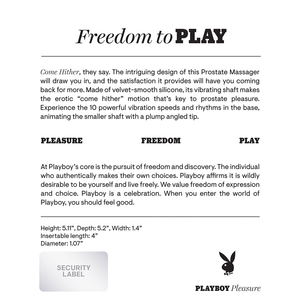 PLAYBOY COME HITHER RECHARGEABLE REMOTE CONTROLLED SILICONE VIBRATING PROSTATE MASSAGER BLACK