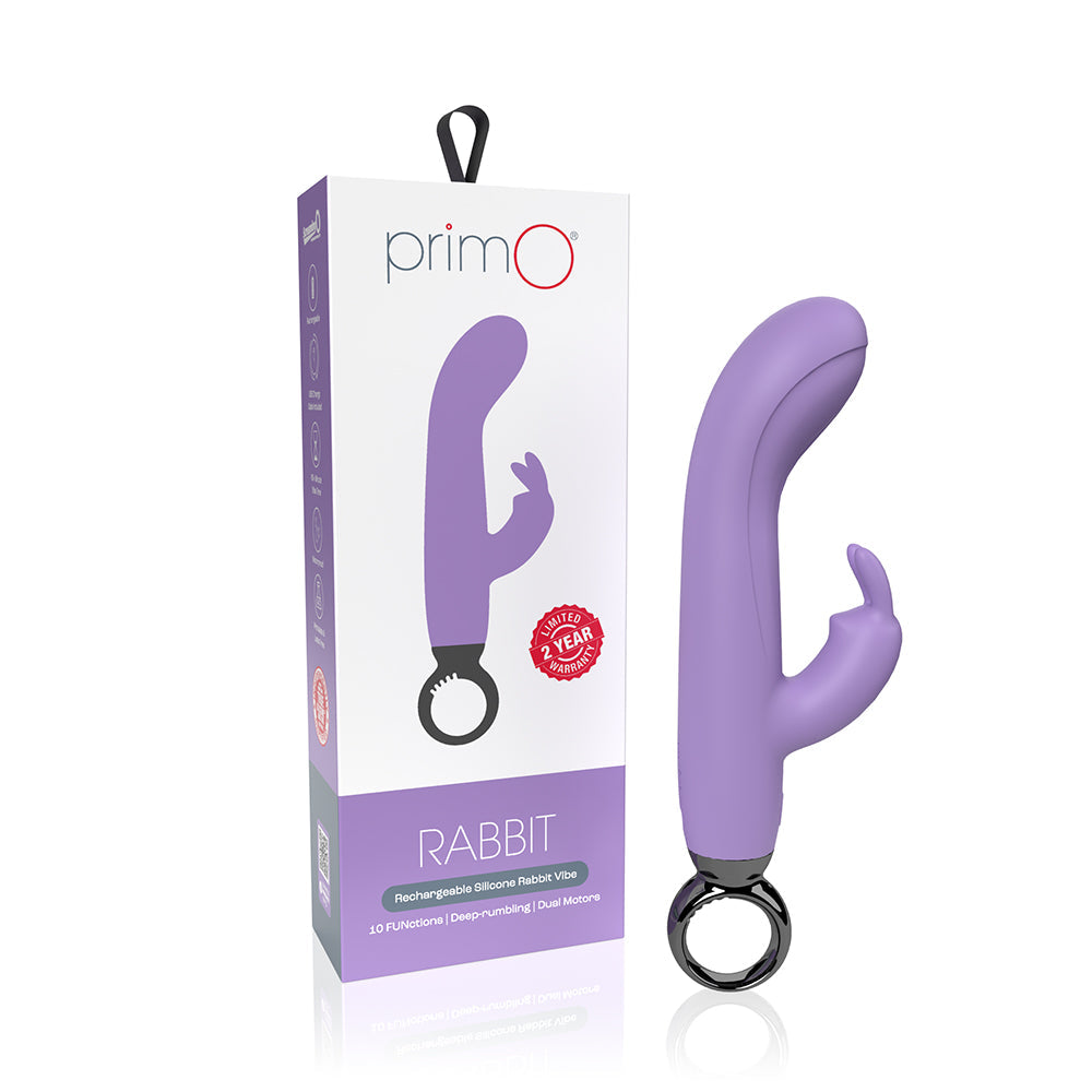 Crafted from buttery-soft True Silicone™, the Screaming O PrimO Rabbit has an insertable length of 4.5in. and a generous 4.25in. girth, which fits most bodies comfortably. The 5+5 motor delivers 5 steady vibration speeds and 5 pulsation patterns at the touch of a button, and the iconic ft.Oft. crafted from ABS allows users to easily grip and position the vibe just where it feels best. The PrimO Rabbit runs for 60 minutes on a single charge and comes with a USB charging cable.Features: Deep, rumbling motor with 5 Speeds + 5 Pulsation FUNctions Mid-sized with a perfect 4.5in. insertable length Soft, flexible rabbit ears Iconic ft.Oft. Acts as a Handle 100% Premium True Silicone™ and Body-safe ABS Water-resistant