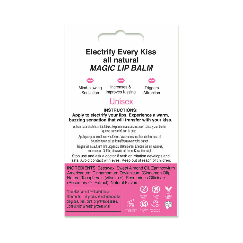 This unique, bubble gum-flavored buzzing lip balm is infused with gender-friendly pheromones that leaves an electrifying kiss impression that someone will never forget. It is made with 100% natural botanical ingredients and essential oils. It is an excellent daily lip moisturizer, and is also safe and pleasurable to use during oral sex.