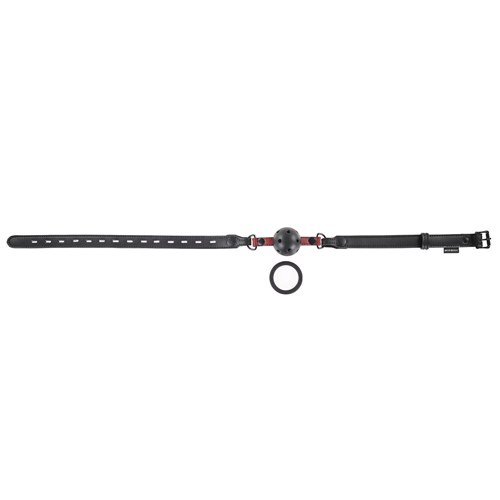 Add the in.shhhhin. to sultry with bright scarlet accents on a black satin finish. Luxurious faux leather and your choice of bite ring or breathable ball gag make the Saffron Interchangeable Gag a versatile must-have for any bondage collection. Simply unsnap each side of the gag to change out pieces for multiple ways to play.Features Equipped with interchangeable bite pieces High-quality, vegan leather design for added durability Adjustable buckle for a secure fit Materials: 60% Polyurethane, 20% Iron, 10% ABS Plastic, 10% Silicone