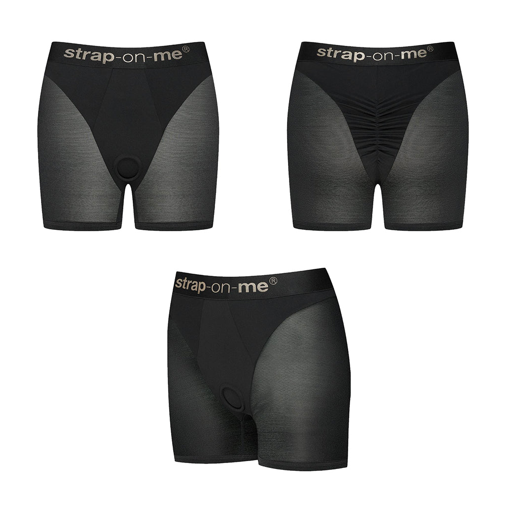 HALO reinvents the classic cyclist harness with a daring twist: a delicate blend of tulle and microfiber that feels like a second skin. Move freely, embrace your curves, and let your body shine with elegance. The elastic waistband sculpts your waist, creating a naturally flattering silhouette.At the back, subtle gathered pleats enhance your curves and add a natural push-up effect. At the front, a discreet stretchable silicone ring lets you pair it with the dildo of your choice, turning every moment into an unforgettable experience.HALO bridges lingerie and activewear, following your movements, your desires, and your style without ever holding you back. Material: 55% microfiber - 45% mesh Cut: high-waist cyclist style Waistband: elastic, optimal support Ring: discreet & stretchable silicone, compatible with all strap-on-me dildos Design: second-skin feel, total freedom of movement Specific details: gathered pleats at the back for a natural push-up effect Packaging dimension: 26 x 18 x 4 cm // 10.2 × 7.1 × 1.6 inches S - Fits US size 4Waist: 26-29 in. (68-74cm)Hips: 35-39 in. (90-100cm)