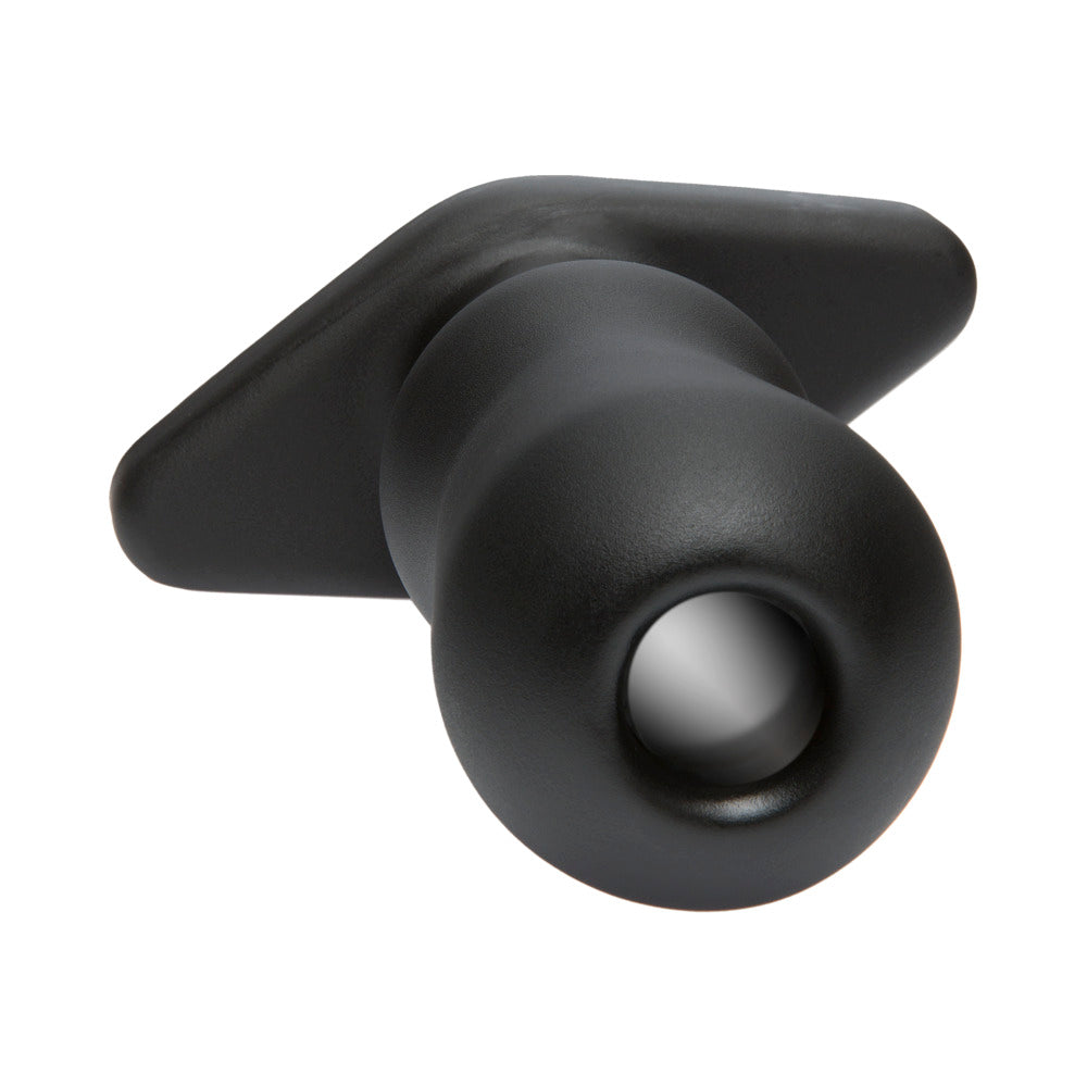 Explore the backdoor with this open-tunnel anal plug. Firm yet flexible, it delivers the satisfying filling sensation of a regular plug, but also features a hollow-bodied design allowing access. Insert fingers, lube, or even a vibrator right through the tunnel with a 1 in. opening. Thick, cushioned material with a unique diamond-shaped base is flexible and designed for all day wearability. Antibacterial Sil-A-Gel formula. Total length 4.7 in., 4.3 in. insertable, 1.7 in. width.