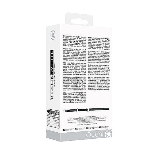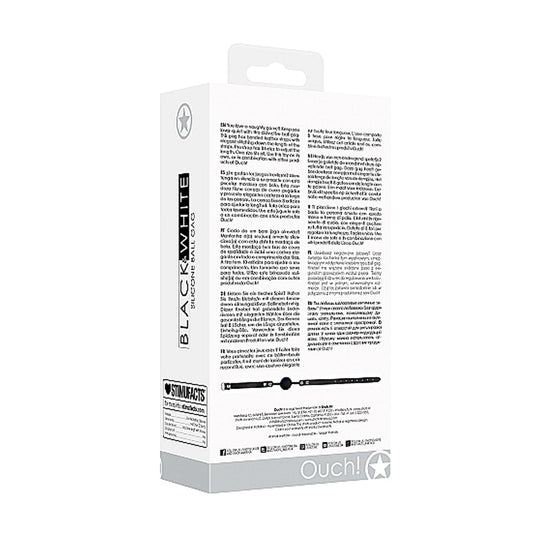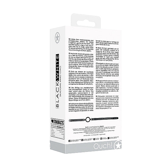 OUCH! BLACK & WHITE SILICONE RING GAG WITH ADJUSTABLE BONDED LEATHER STRAPS BLACK