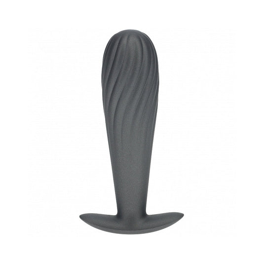 OUCH! SMOOTH SILICONE RIBBED ANAL PLUG 4.6 IN. GUN METAL