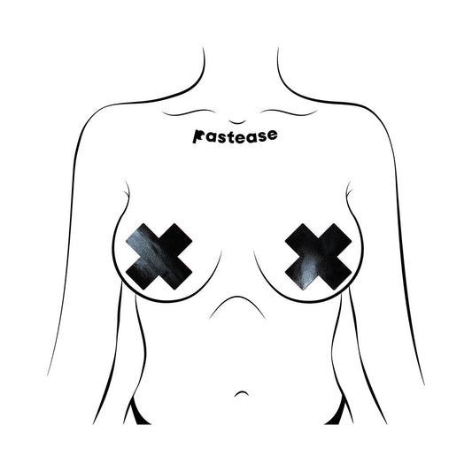 PASTEASE PLUS X: FAUX LATEX PLEATHER VINYL BLACK CROSS PASTIES