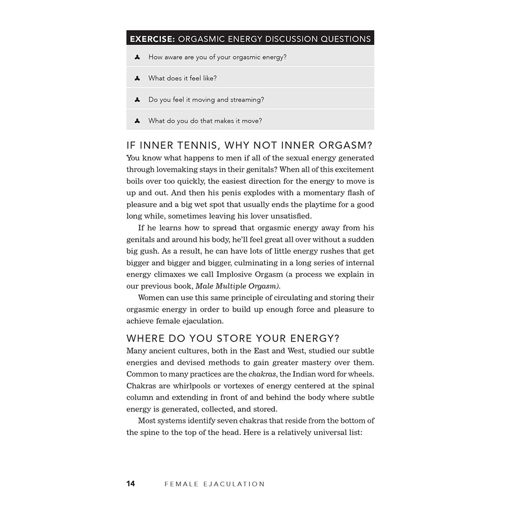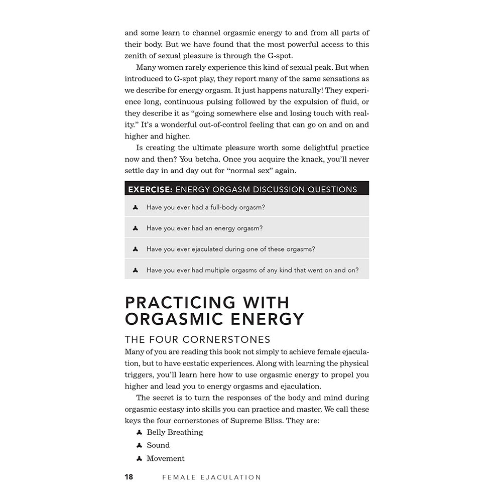 Female EjaculationUnleash the Ultimate G-Spot OrgasmBy Somraj Pokras, Jeffre TalltreesPaperback; 192 pages Learn to experience the ultimate orgasm through proven tips, tricks and strategies to maximize pleasure.Do you want amazing, mind-blowing sexual ecstasy–full-body, multiple and extended orgasms, as well as the elusive and mysterious experience of female ejaculation?In this book, you''ll learn how to awaken your secret orgasmic trigger, the G-spot. With step-by-step instruction for both men and women, this book shows how to give and receive incredibly powerful G-spot orgasms that take you to the ultimate point of pleasure–female ejaculation.You may have heard the widespread myth that only a select few women have the ability to achieve an orgasm heightened by ejaculation. Don''t believe it. With the correct stimulation, any woman can enjoy the full-body satisfaction that comes from the total orgasmic release of female ejaculation.In Female Ejaculation you''ll find answers to all your questions: What is female ejaculation? Where is the G-spot? How is the G-spot best stimulated? How can I experience female ejaculation?