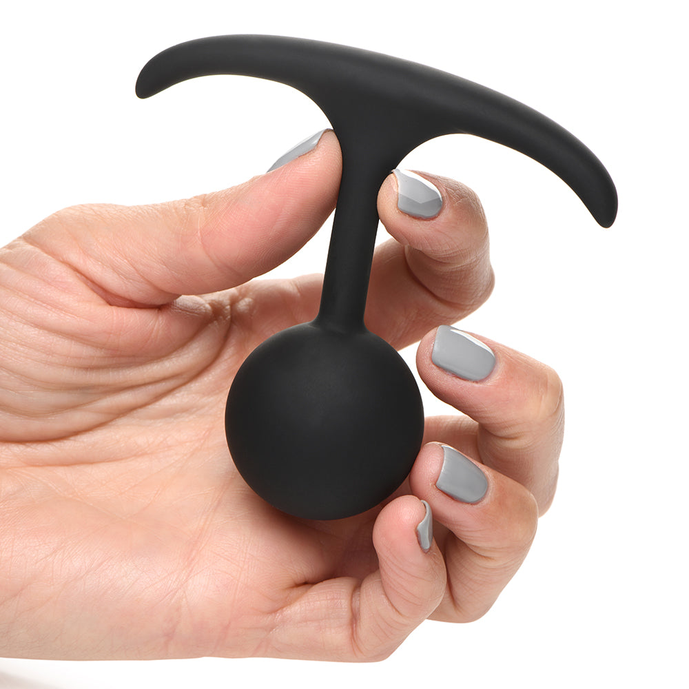 Learn what your ideal size is with these Heavy Hitter Comfort Plugs! The round ball serves as a large bulb for your backdoor to learn to pop inside. Test it out and see what your perfect size is! As you learn to take the big head inside of you, you can also learn to hold it there with the resistance from the solid, metal core! Enjoy the weighted center of the plug as it adds extra pressure inside you as you shift into different positions! Let gravity add to your pleasure as the plug pulls downward and train your sphincter muscles to hold it in place without letting it slip out! The plug is covered in silky soft, premium silicone; enjoy the phthalate-free, body-safe and plush material that is most compatible with water-based lubricants. The slim neck makes wearing it safe and the slim base makes room for your butt cheeks so you can easily and comfortably wear it for extended periods of time. To clean it, push it out and wash it with warm water and mild soap, then spray with a toy cleaner. Store out of direct sunlight and do not let it come into direct contact with other silicone toys or non-anal toys.Use plenty of lube inside your bum and on the toy. Use a lube shooter to help lubricate your sphincter prior to entry. Slip it in and be patient as your hole expands. Once inside, let yourself breathe as the toy settles into place. Enjoy the simple pressure and feeling of fullness or add to the experience and enhance it with other toys! Try out touching and stroking yourself while it''s inside, slowing down your breathing and sending your breath deep into your abdomen and belly. Grind against your booty and add pressure to the plug as you grind against it. Play with yourself and notice how much more sensitive your body is now that you''re filled up with this delicious and delightful plug! Train yourself to take bigger sizes and get ready for your partner or larger dildos in the future by wearing the plug longer and sizing up! Round Bulb Plug: Find the perfect size for your backdoor with this round plug! See if you can slip the large, round bulb into your hole and enjoy the firm, full feeling in your rear! Weighted with Metal: Unlike other toys, this plug is weighted with a metal core so you have to work your sphincter muscles to hold it in. Train your bum and enjoy the extra pressure against your insides as you move around into different positions! Premium Silicone: Play worry free with premium, phthalate-free silicone. The plush, silky smooth and flexible material is perfect for anal exploration and enjoyment! Use only with water-based lubricants. Slim Neck and Base: Make more space for your butt cheeks with a slim neck and base! The small neck makes it safe to insert without worry and the slim base makes it possible to sit on your bottom while the plug is inside so wearing it is more comfortable! Measurements: Overall: 3.3 inches. Bulb length: 1.4 inches. Neck length: 1.5 inches. Total insertable: 2.9 inches. Bulb diameter: 1.4 inches. Base length: 3.6 inches. Materials: Silicone, metal Note: Use only with water-based lubricants. Wearing it while going through some x-ray machines may send off an alarm.