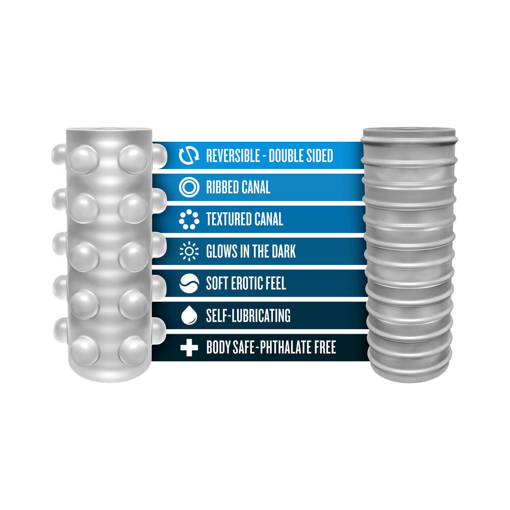 M FOR MEN SOFT + WET REVERSIBLE ORB GLOW IN THE DARK SELF-LUBRICATING STROKER FROSTED