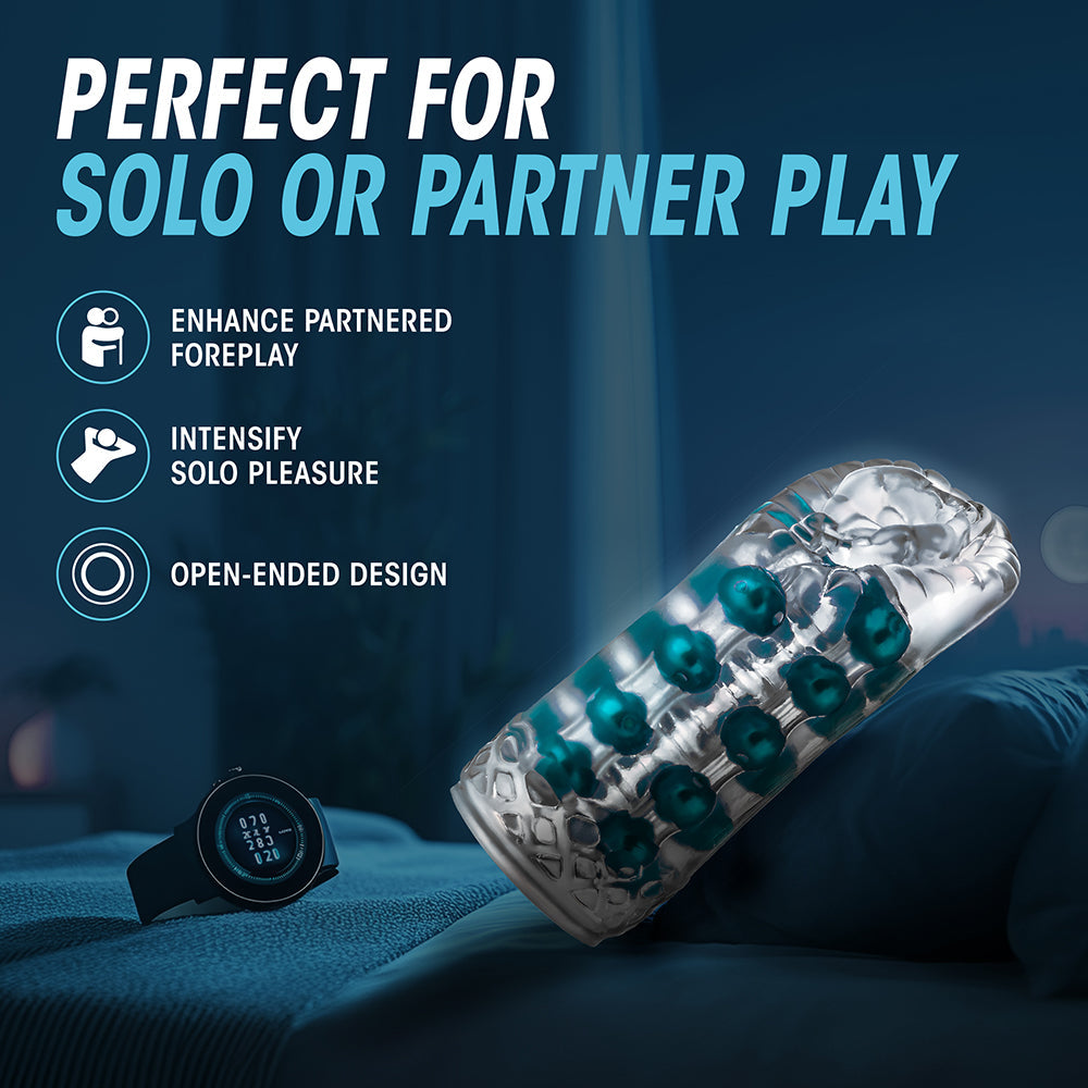For the man on the go, don''t forget to grab The Super Stroker before you head out! With its stretchy, sensuously soft, realistic feel and 4 rows of pleasure pearls in the ribbed canal, all together they massage your shaft for the utmost in intense stimulation. This tunnel of lovin'' is 5.5 inches long, warms to the touch and is definitely slippery enough when wet, that you will cum again and again! Use it solo or have your lover do it for you and implement it in your foreplay sessions. It''s about time you enjoyed a sexy snatch and one that you can pop in to play with, whenever you want! 5.5 Inch Length x 2.5 Inch Width Super Soft Feel 4 Columns of Massaging Pearls Open Ended Ribbed Love Tunnel Made from TPE. Contains no Phthalates, Paraffins or Latex