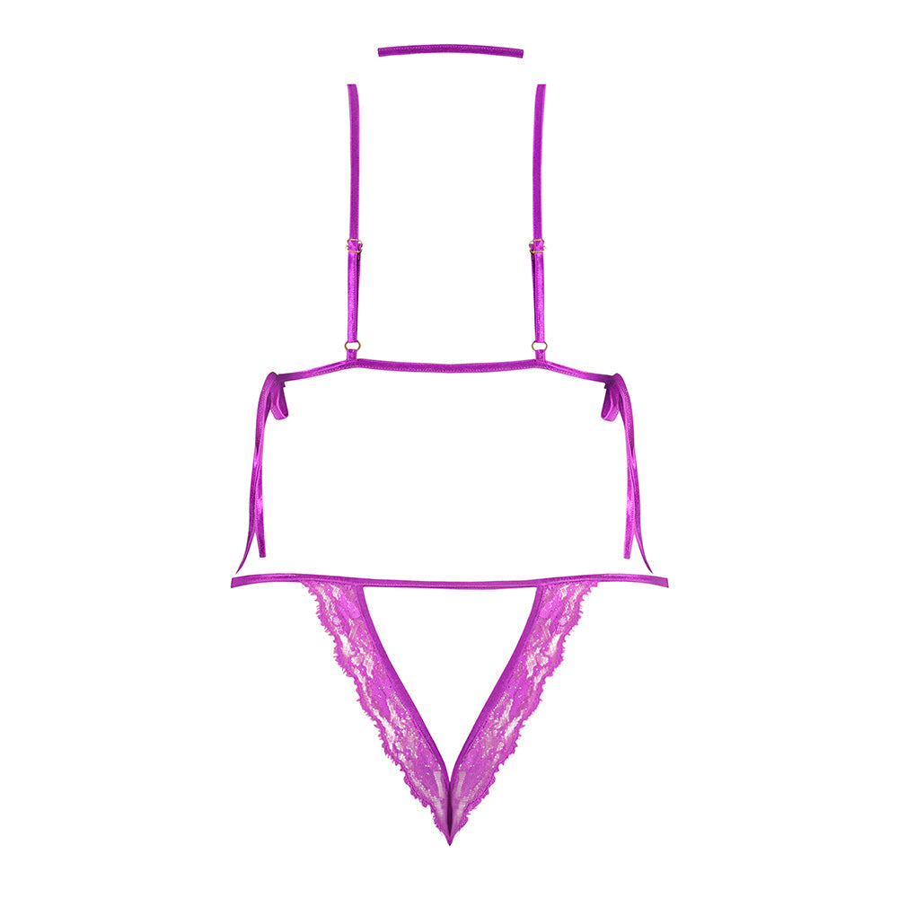 MAGIC SILK BUTTERFLY FANTASIES PEEK-A-BOO & CROTCHLESS TEDDY NEON PURPLE QUEEN SIZE
