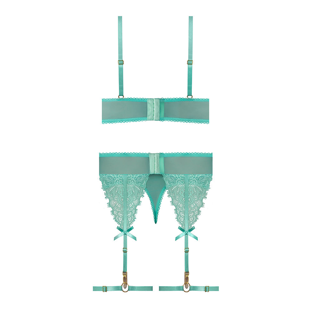 MAGIC SILK CARIBBEAN CRUSH DEMI BRA & THONG WITH GARTER SET AQUA GLOW QUEEN SIZE