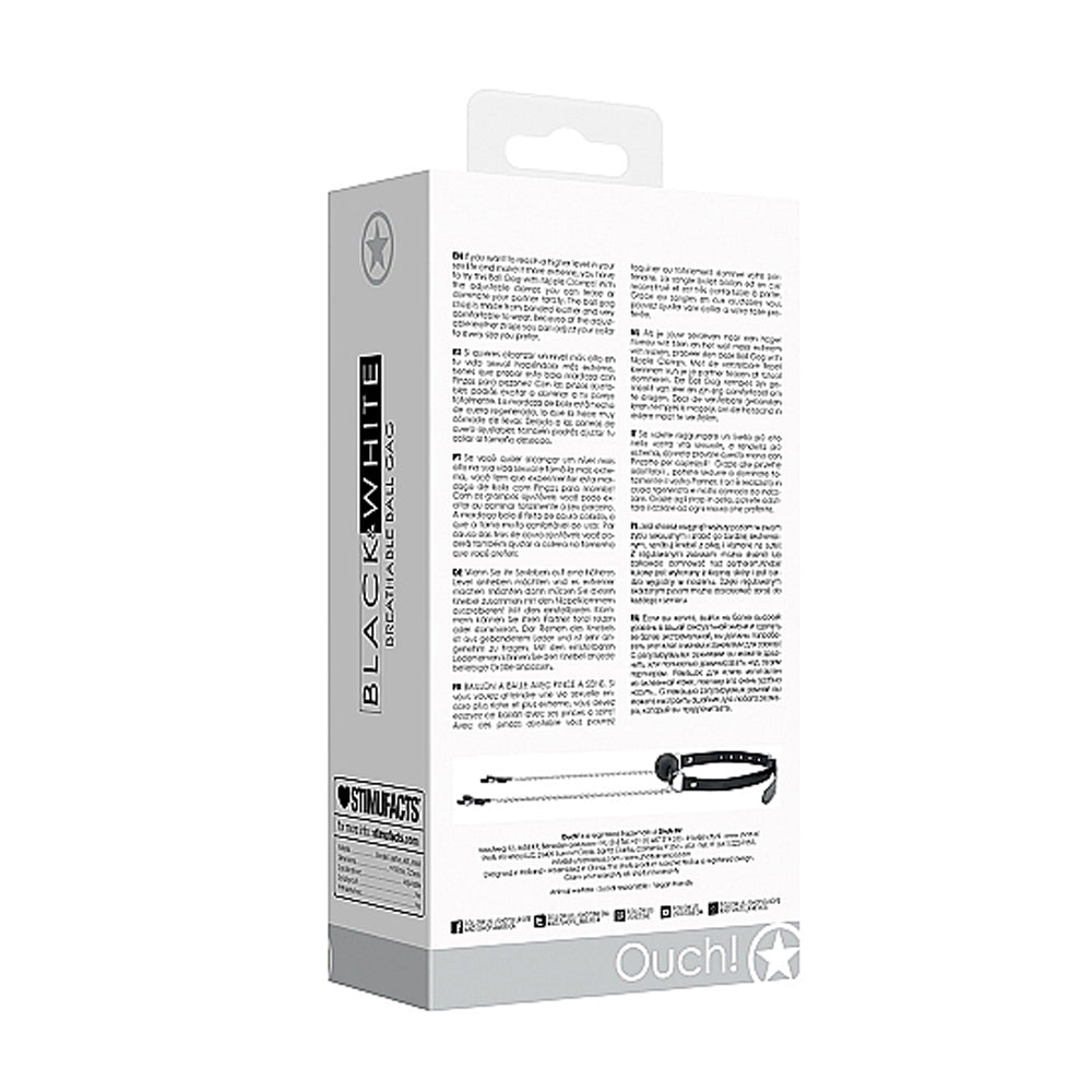 OUCH! BLACK & WHITE BREATHABLE BALL GAG WITH NIPPLE CLAMPS BLACK