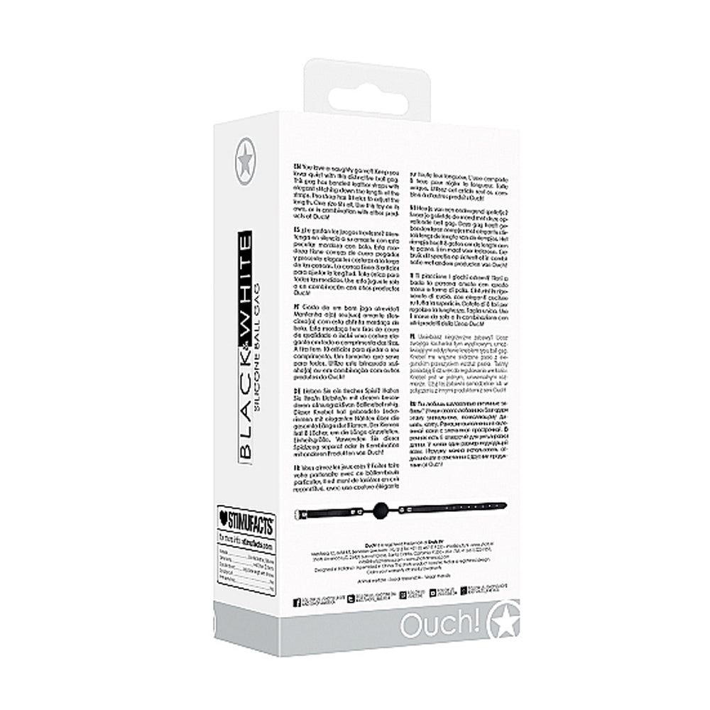 OUCH! BLACK & WHITE SILICONE BALL GAG WITH ADJUSTABLE BONDED LEATHER STRAPS BLACK