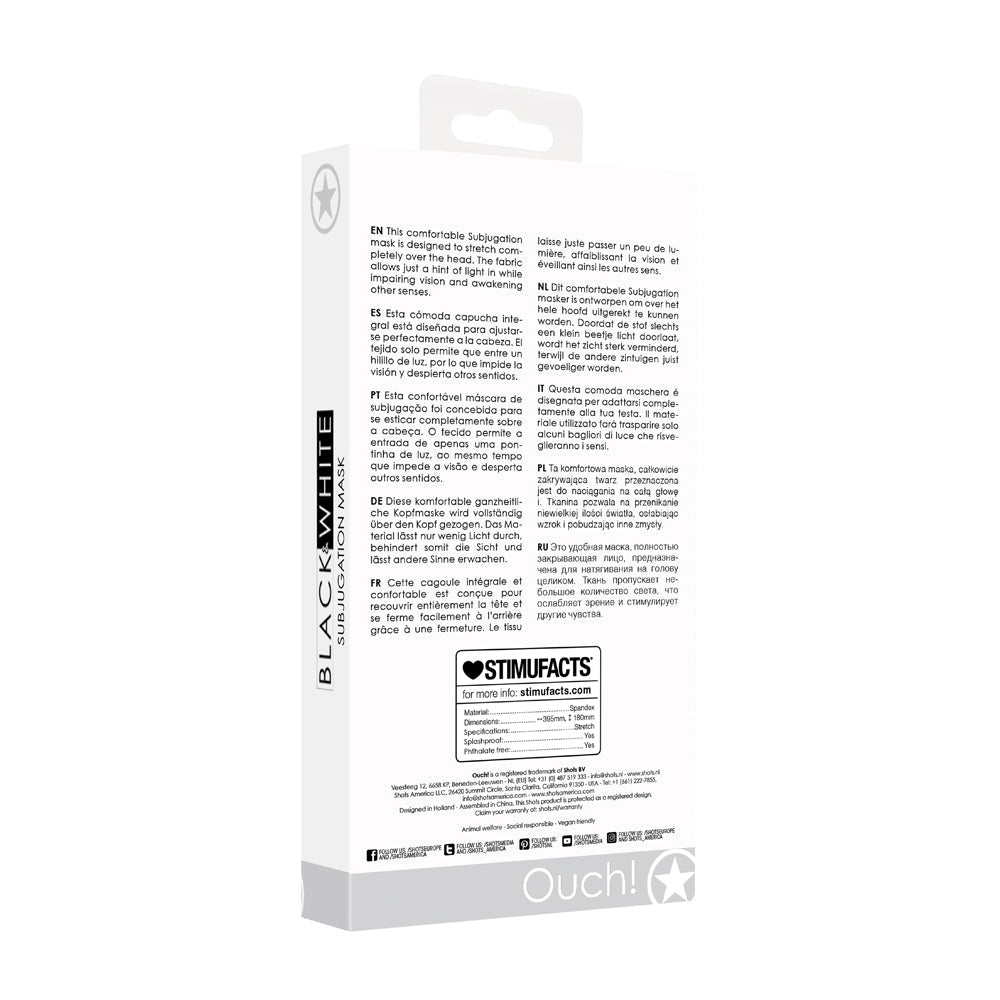 OUCH! BLACK & WHITE SUBJUGATION MASK ALLOWS JUST A HINT OF LIGHT BLACK