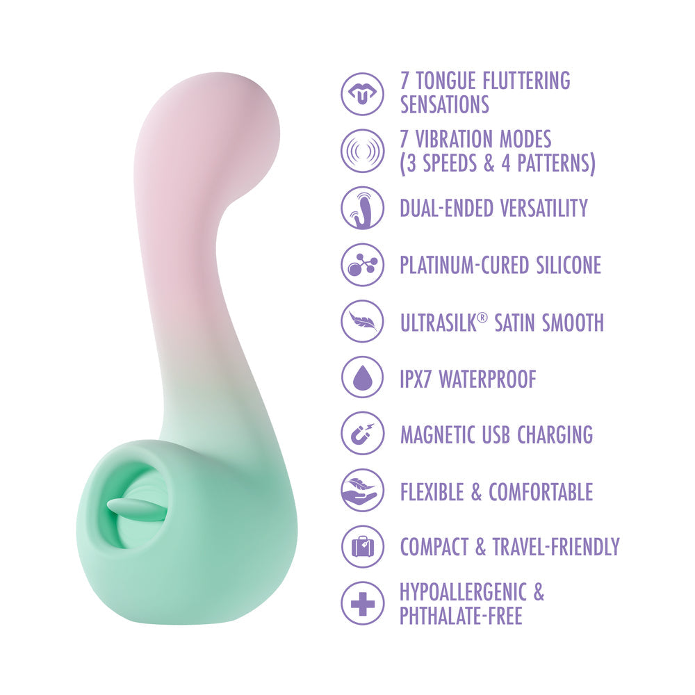 Tune into your desires with Melody, the dual-ended vibrator that turns every touch into a symphony of pleasure. Designed for seamless versatility, Melody blends deep, sensual vibrations with teasing, tongue-fluttering sensations, perfectly in tune with your every mood. Whether it''s slow, seductive foreplay, pinpoint clitoral stimulation, or indulgent G-spot pleasure, Melody plays the perfect note every time. Crafted from 100% body-safe platinum-cured silicone, its flexible design moves effortlessly with you, while the satin-smooth UltraSilk finish glides across your skin like a whisper. Waterproof, travel-friendly, and fully rechargeable, Melody is always ready for pleasure, anytime, anywhere. Let Melody take you on a journey of pure bliss, where every vibration, every flutter, and every pulse is perfectly tuned to your deepest desires. 7 Smooth Vibrations (3 Speeds, 4 Patterns) 7 Tongue Fluttering Sensations (3 Speeds, 4 Patterns) Dual-Ended For Endless Pleasure Possibilities 100% Body-Safe Silicone, Satin Smooth UltraSilk IPX7 Waterproof and Magnetic USB Charging