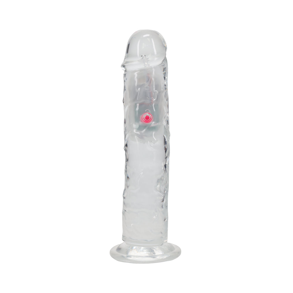 REALROCK WIRELESS RECHARGEABLE REMOTE CONTROL LED VIBRATING 8 IN. DILDO CLEAR