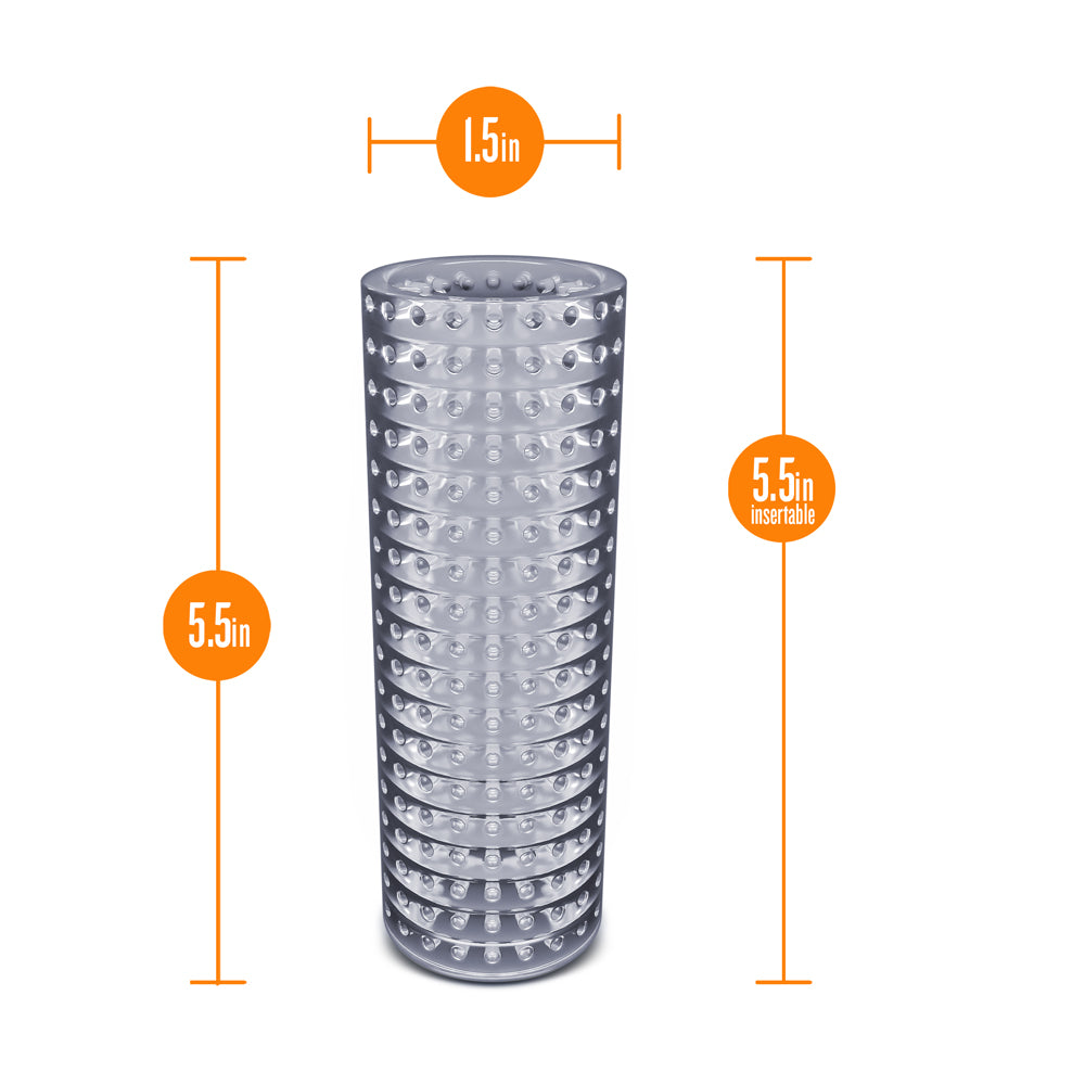 Sleek, modern, and loaded with sensation, the RIZE! Strokez sleeve features 5.25 inches of stimulating ticklers that cause waves of pleasure with each stroke. Turn it inside out and explore a smooth stroke too. Tight enough to cause pressure but soft and flexible enough for easy insertion. Use it with a water-based lubricant. Strokes is open-ended, easy to clean and contains no phthalates, paraffins, or latex.Features Super Squishy Soft and Open Ended Stimulating Ticklers For Optimal Sensations Squeezable to Apply Desired Pressure Crystal Clear to Watch as You Play Contains No Phthalates, Paraffins, or Latex