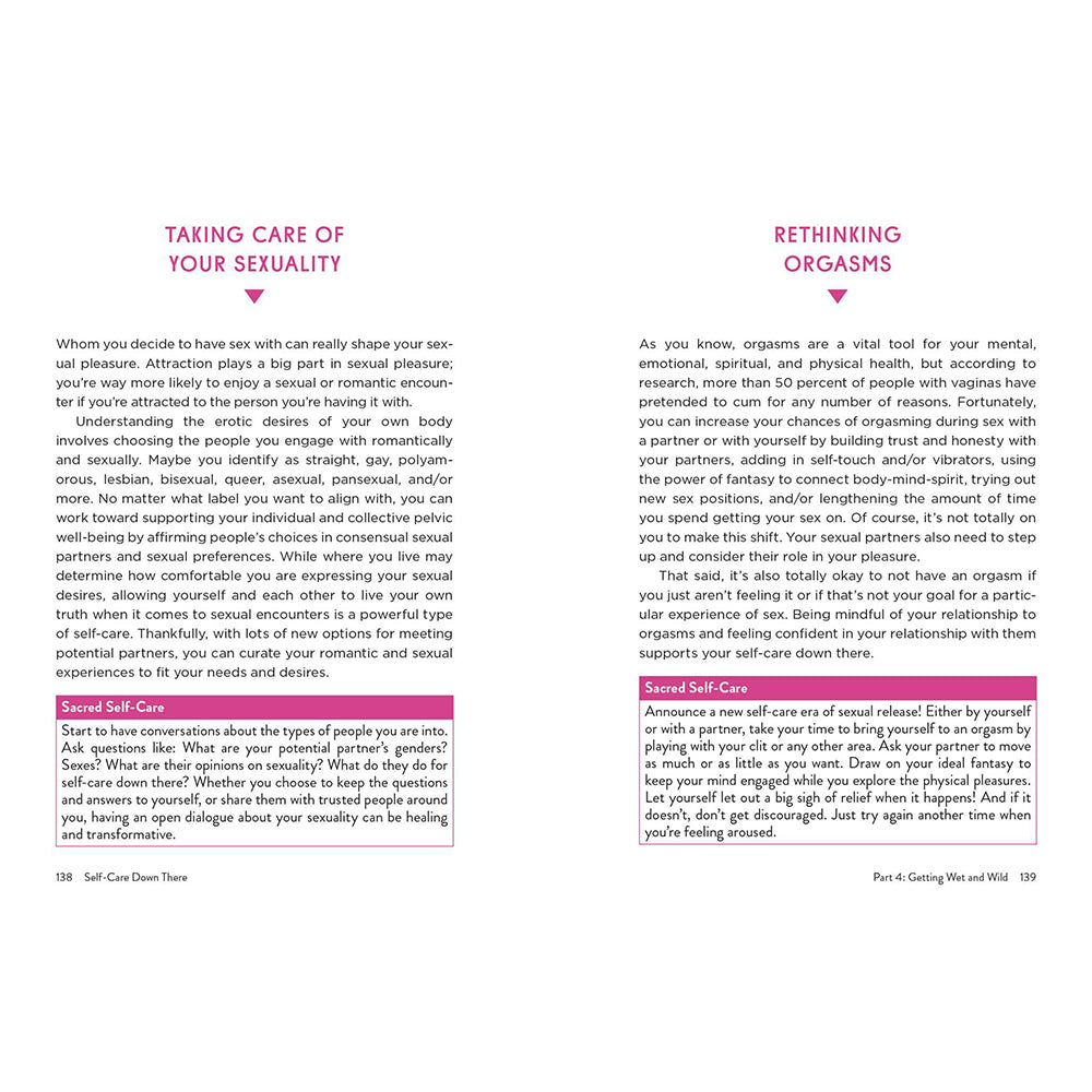 Self-Care Down There From Menstrual Cups and Moisturizers to Body Positivity and Brazilian Wax, a Guide to Your Vagina''s Well-BeingBy Taq Kaur BhandalPaperback; 192 pagesTake control of your vaginal health and bring your own standards of beauty to your intimate parts with this book offering frank, practical, and accurate beauty and wellness advice for the vagina and surrounding area.Get the lowdown on how to take care of your nether regions with this fun and frank guide focused on helping you maintain your private parts. Covering everything from everyday cleanliness to internal and external safe health advice as well as tips regarding the groom-or-not-to-groom debate and sex-friendly good habits to practice, Self-Care Down There will help you keep your private parts in tip-top shape while expressing the true you!Founder and CEO of IM With Periods and menstrual cycle charting coach Taqdir Kaur Bhandal has dedicated her career to offering wellness advice to women. Whether it''s period charts or sustainable period products, Self-Care Down There is an essential and practical guide to feminine care and the wellbeing of all genders.