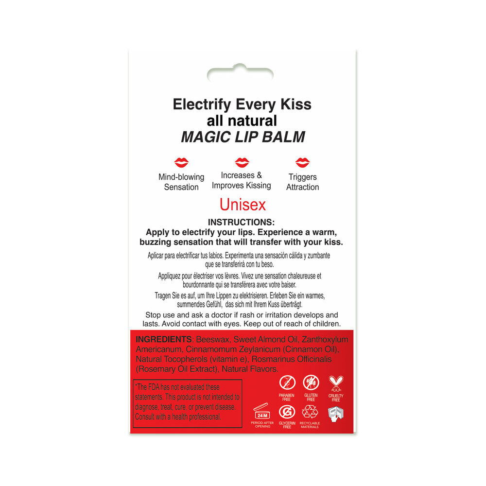 This unique, strawberry-flavored buzzing lip balm is infused with gender-friendly pheromones that leaves an electrifying kiss impression that someone will never forget. It is made with 100% natural botanical ingredients and essential oils. An excellent daily lip moisturizer, it is also safe and pleasurable to use during oral sex. 0.075 fl. oz.