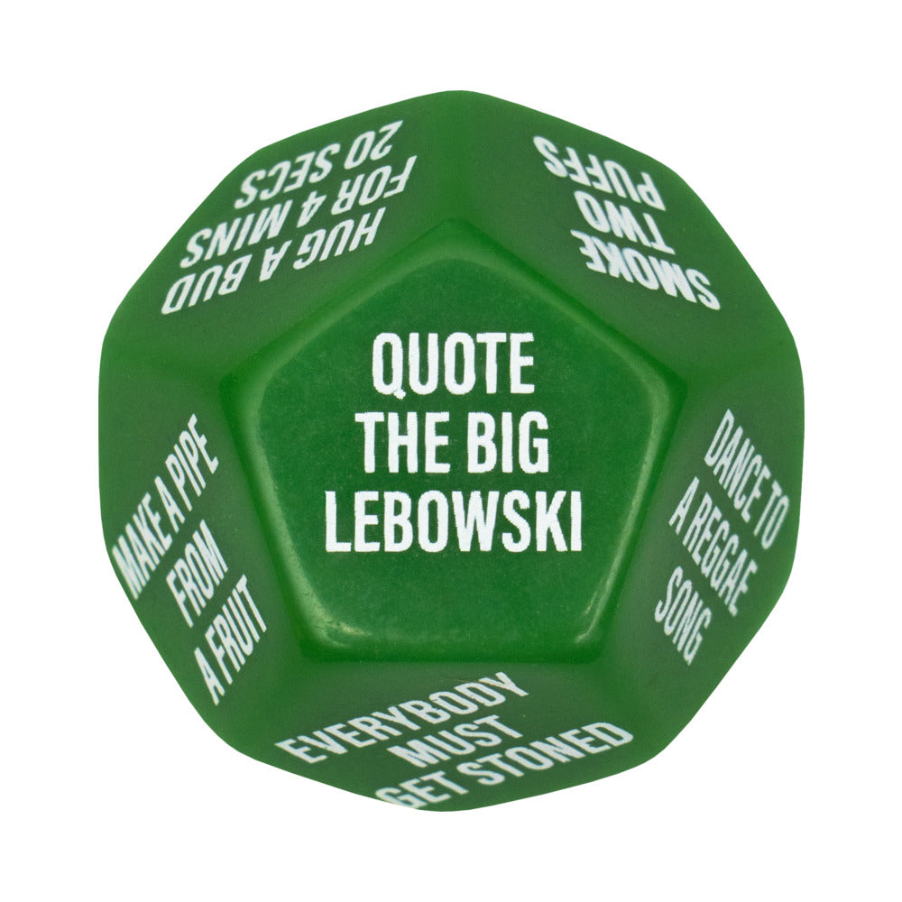 Two Large 28mm 12-sided Dice Premium Packaging For Adults Only! ft.Rollft. play with this Stoner Party ft.Do Or Dareft. Dice Game! Features two large 28mm 12-sided dice that tell you and your best bud what to do, if you dare. Smoke, roll, and puff puff play!Dice 1: Do This... Lick Something Green Name Your Top 10 Favorite Munchies Puff, Puff, Pass Gas Smoke Two Puffs Hug A Bud For 4 Min 20 Secs Act Like A Stoned Robot Everybody Must Get Stoned Quote The Big Lebowski Make A Pipe From A Fruit Summon A Demon Rap About Your Love Of Weed Dance To A Reggae Song Dice 2: While Doing This Or Make A Smoke Ring Or Take A Toke Or Pretend Youre A T-Rex Or Make A Weird Sandwich Or Tell A Funny Weed Story Or Get High On Your Own Supply Or Try To Levitate Or Roll The Perfect Joint Or Make A Weed Meme & Post It Or Laugh For 420 Seconds Or Turn Clothes Inside Out Or Text Happy 4/20 To Your Mother