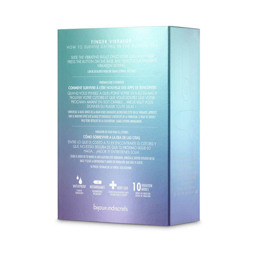 Slip it onto your finger using the ring, then press the button at the base to turn it on and give your clitoris a good treat. You can also remove the silicone sleeve and use it as a regular bullet vibrator. Press the button again to change the intensity and vibration settings. When you're done, hold the on/off button for a few seconds until it stops to turn it off.