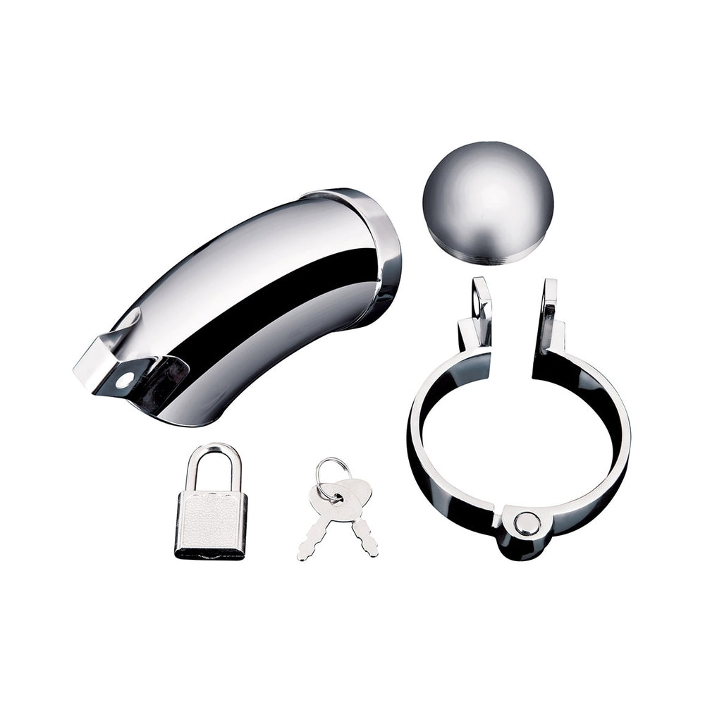 Put your partner in their place with the Total Submission Cock Cage! Keep them from getting too hard with the solid metal sheath that surrounds their penis, and make sure they won''t go anywhere with the ring that secures around their testicles. Perfect for exploring BDSM play and experiencing the intense orgasm that follows when it''s been denied. Got somethin'' kinky in mind? We''ve got you covered! Curved, Ergonomic Design Easy To Attach 3-piece Set Comfortable For Long-term Wear Includes Padlock & Key Made Of Body-safe Metal Material: Stainless SteelItem Length: 4.13 in.Item Width: 2.36 in.Item Height: 3.54 in
