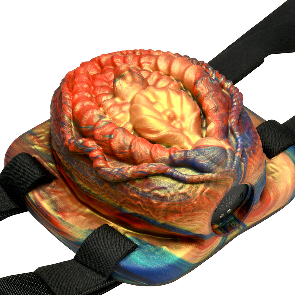 Unleash your wild side with the Hell''s Angel Vibrating Silicone Grinder! This fantasy-themed pleasure toy is designed for women who crave intense, unique stimulation. The textured vulva with its soft, squishy grooves and ridges is perfect for solo play, delivering ultimate satisfaction with every use. Enjoy hands-free fun by attaching it to a pillow, bench, or include your partner using the included soft, stretchy neoprene straps. Change the settings with ease by using the remote control which allows you to choose between 3 speeds and 7 thrilling patterns. With a range of up to 26 feet, you or your partner can easily control the excitement. Made from premium, body-safe, phthalate-free silicone, this grinder is also IPX6 waterproof, making it shower-friendly. When it''s time for a recharge, simply use the provided USB cable. Dive into the wicked unknown with your own personal Hell''s Angel!She appears out of thin air, responding to the summoning that you just performed. A succubus, she is naked, brimming with energy, and covered in Hell''s flames. She writhes as you speak her name and command her to answer your summons. Fire flickers in her eyes and she nods, understanding why you''ve called her. She leaves the circle of flame she arrived in and begins to lick you between your thighs. You moan in ecstasy as she gobbles up the nectar between your thighs. You feel emboldened and daring so you flip her onto her back, grab her around the waist, and then rub yourself against her lips! The feeling is electric and you can feel the buzzing hum from her Hellfire-fueled body! You both scream as you reach ecstasy and then collapse in post-pleasure bliss. Fantasy Grinder: This Hellspawn is horny and waiting for your attention! Enjoy the uniquely textured vulva with soft, squishy grooves and ridges that you can ride on until you achieve full satisfaction! Remote Control Vibes: Choose between 3 seeds and 7 patterns that buzz from the imbedded bullet vibrator. Use the battery-operated remote from up to 26 feet away to switch settings! Strap On to Ride: Use the soft, stretchy, neoprene straps to attach this to a pillow, bench, or to the body of your partner so you can enjoy the ride! Premium Silicone: Made out of premium quality, phthalate-free, body-safe silicone. Rechargeable and Waterproof: Rated IPX6 waterproof, it can be taken in the shower but not submerged under water. Recharge via the USB cable provided. Materials: Silicone, Neoprene, plastic, Velcro Note: Remote distance of up to 26 feet; requires one AAA battery (not included). Measurements:Overall length: 5 inchesOverall width: 5 inchesOverall height: 2.7 inchesStraps adjust from 12 inches to 52 inches in circumference