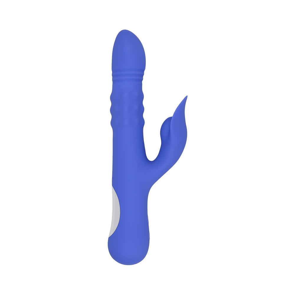 Blow your mind with pleasure when you activate all 3 motors of this big dual vibe with plenty of surprises. The main shaft not only vibrates powerfully β it also thrusts and bulges with churning beads to create an ''exploding'' sensation that sends you right over the edge. The vibrating petal-shaped stimulator adds tantalizing coverage with flexibility to move with your body β even under water as the whole toy is completely submersible. 10 vibrating speeds and patterns in shaft and stimulator 10 thrusting and bead-bulging speeds and patterns in shaft 3 motors, 2 vibration motors work simultaneously Insertable length 5.25", insertable diameter 1.46" Made from phthalate and latex free silicone and ABS USB magnetic rechargeable, cable included Height: 9.72", Depth: 3.03", Width: 1.66" Waterproof and submersible
